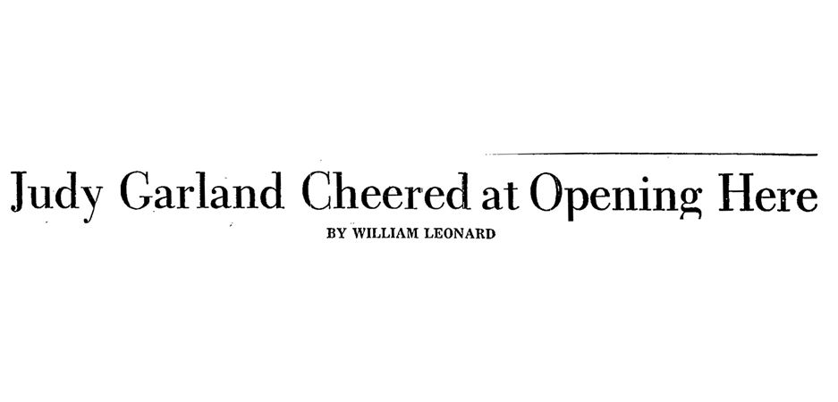 "There were cheers and floral tributes for Miss Garland’s singing," wrote Seymour Raven in the Chicago Tribune. "The singing is spacious and warm and beautiful, whether it is in music to be caressed or belted. Miss Garland, having long experience, covers quite a span of song writing — from ’When You’re Smiling’ and ’I Can’t Give You Anything but Love’ through the ’Trolley Song’ right down to the ’Purple People Eater.’ Even songs that weren’t written especially for her become hers by right of interpretation. She is an ’original,’ and thus has the right. At the end of the evening, she recreates her famous tramp number, ’Couple of Swells,’ with Mr. King in deft partnership. Then, if opening night is any indication, she may sit down over Orchestra Hall’s imaginary footlights and do a softly beautiful ’Over the Rainbow’ and a bouncing ’Chicago’ by way of encores."