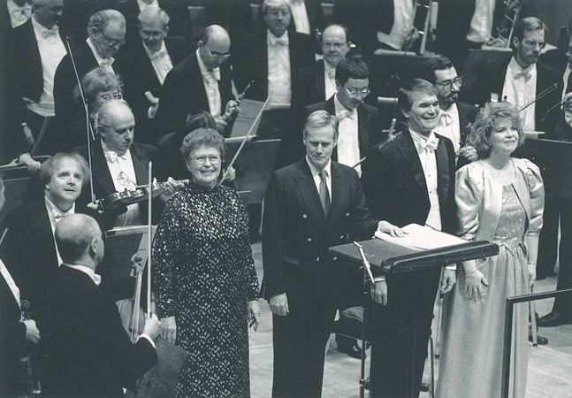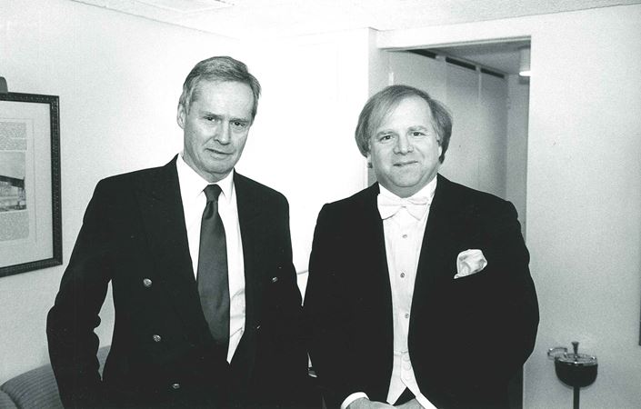 On June 3, 1990, Rorem made a rare appearance as a pianist in Orchestra Hall, accompanying soprano Arleen Augér. “The idea of pairing Augér, one of the few American singers who really care about American vocal music, with composer-pianist Rorem, who has done more than any other living American to cultivate the art of native song, was an inspired one,” wrote John von Rhein in the Chicago Tribune. “Fully half of the program was given over to his songs. Throughout the program, Rorem’s accompaniments were rich in the special insights perhaps only a composer who happens to be a skilled pianist can bring to them.”