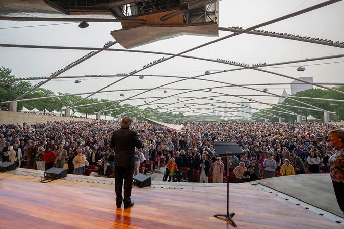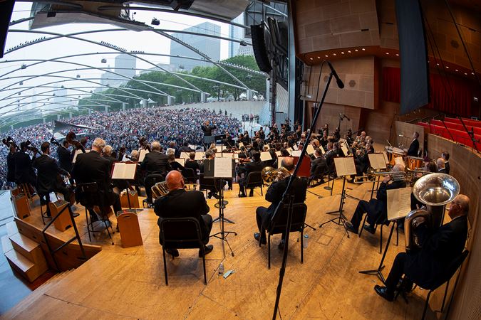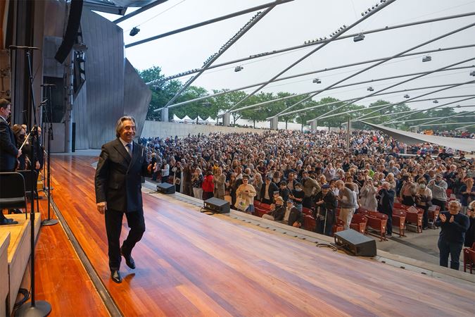 Riccardo Muti led the Chicago Symphony Orchestra in his final concert as music director on Tuesday evening at Millennium Park’s Pritzker Pavilion for a Concert for Chicago — a free summer concert presented in collaboration with the Chicago Department of Cultural Affairs and Special Events. After opening with the Star-Spangled Banner, Muti and the Orchestra gave heartfelt performances of Florence Price’s peaceful Andante moderato and Tchaikovsky’s monumental Fifth Symphony to a crowd of eager listeners in the park.