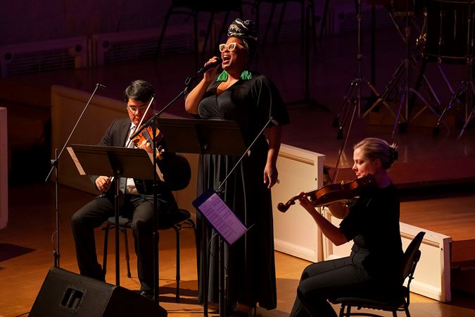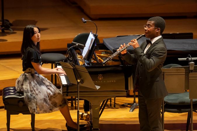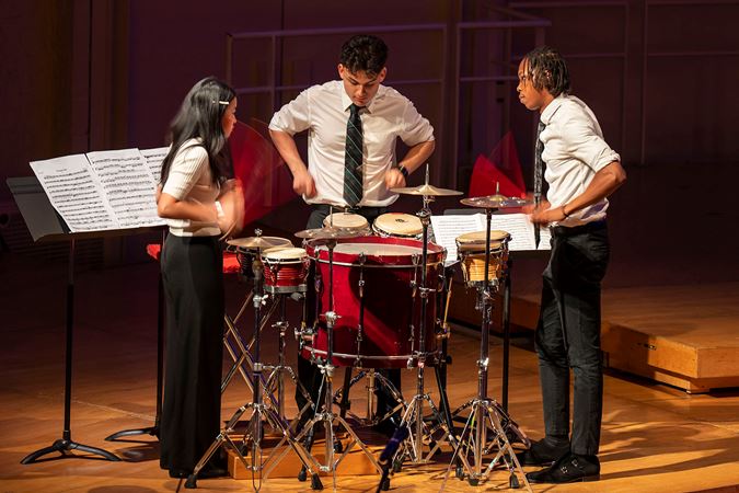 The Negaunee Music Institute at the Chicago Symphony Orchestra celebrated another inspirational season of education and community engagement during its annual NMI Showcase on Monday in Orchestra Hall. The program featured remarkable artists, including musicians from the CSO, Civic Orchestra of Chicago, Percussion Scholarship Program, Chicago Musical Pathways Initiative, Young Artists Competition and more. The event also celebrated the 10th anniversary of the Civic Fellowship program, with world premieres from composer Tyshawn Sorey and former Civic Fellow alum Zachary Good.