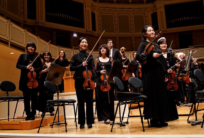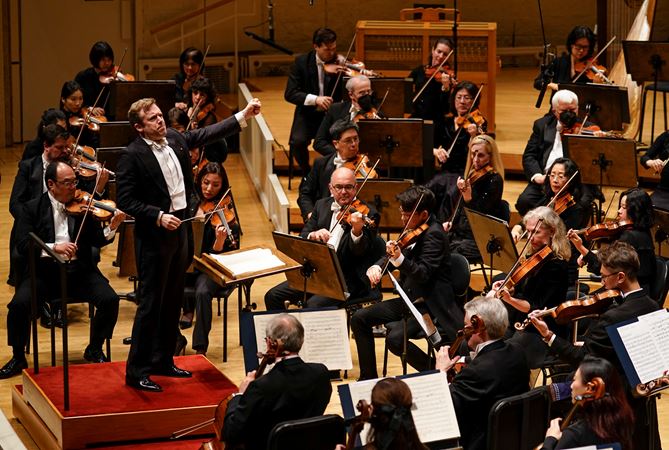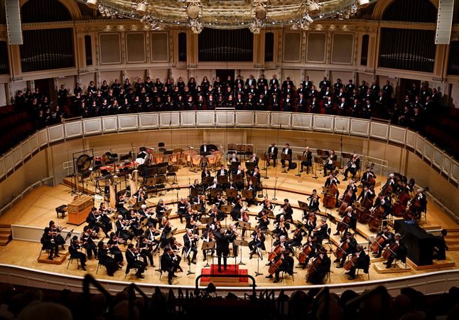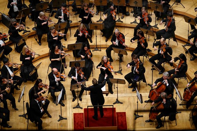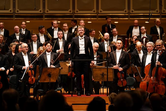 From Mars to Jupiter to Neptune, the bold and brassy sounds of Holst’s The Planets filled Orchestra Hall on Thursday night as the Chicago Symphony Orchestra and conductor Daniel Harding performed the iconic suite in front of an enthusiastic crowd. Before the concert, a string quartet of CSO musicians and CSO trumpet John Hagstrom helped celebrate Chicago radio DJ Terri Hemmert’s 50th anniversary at WXRT during the first Classic Encounter event of the season, which Terri has hosted since its inception. Also featured on the program were Brahms’ radiant “Song of Destiny,” with the magnificent vocals of the Chicago Symphony Chorus, and Schumann’s dramatic Overture to Manfred.