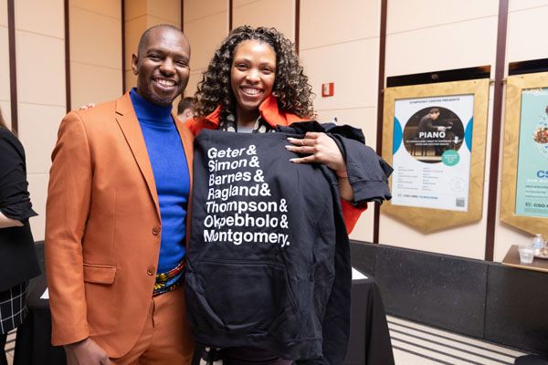 Curated by Montgomery, the concert brought together CSO musicians, conductor Donald Lee III and tenor Russell Thomas, along with Montgomery on violin and Simon on piano in improvised interludes. It also marked the world premiere of Barnes’ chamber work The United States Welcomes You, commissioned by MusicNOW. Also performed were Ragland’s Eight Tones for Elijah, Thompson’s In Response to Madness and Geter’s Annunciation. After the concert, the CSO African American Network hosted a party in the Rotunda, where attendees were able to meet the artists and composers on the program and enjoy refreshments.