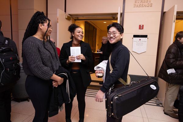 Before the performance, several Blacknificent 7 members gathered for a panel discussion, co-presented by Chicago Humanities and emceed by WFMT-FM host LaRob K. Rafael, in Grainger Ballroom.