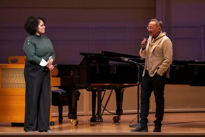 She also pointed with pride to some of the high-profile composers who have taken part in CSO MusicNow during her tenure, including Osvaldo Golijov (February 20, 2023), a former Mead Composer-in-Residence, and violinist Mark O’Connor who performed two of his works (Nov. 21, 2022), with his wife, Maggie, also a violinist. Performances and works by composer and bassist Xavier Foley were also on the program.
