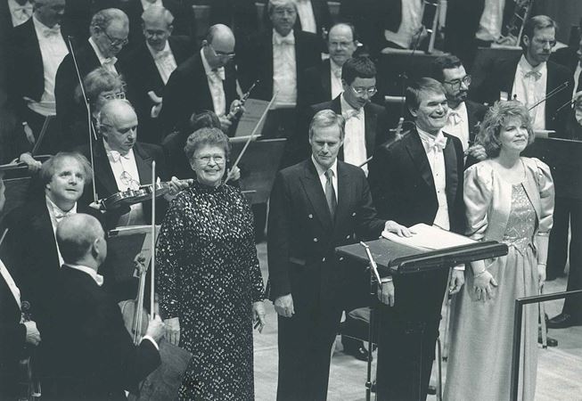 A staunch advocate for new music, Slatkin led the Orchestra in the world premieres of Donald Erb’s Concerto for Brass and Orchestra in April 1987, Jacob Druckman’s Brangle in March 1989, and, along with the Chicago Symphony Chorus, Ned Rorem’s Goodbye My Fancy in November 1990. He also led the U.S. premiere of Benjamin Britten’s Quatre chansons françaises in May 1983.