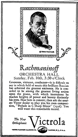 Stock became fascinated with the work of Rachmaninov, programming the composer’s pieces more than 70 times, including more than two dozen sets of concerts featuring the Second Symphony. The Chicago Daily Tribune noted on the Rachmaninov’s first recital in Orchestra Hall on March 10, 1919, “If Sergei Rachmaninov’s audience of yesterday was, more than anything else, a tribute to the composer of the C-sharp minor prelude, then that familiar fragment is one of the most valuable and vital of all piano-pieces: no other pianist in at least three years has drawn such a crowd in Chicago. . . . Of course, knowledge of and remembrance for Rachmaninov’s in his other and more important aspects had something to do with yesterday’s outpour: his Second Symphony is virile and popular matter in the Orchestra’s ready repertoire.”