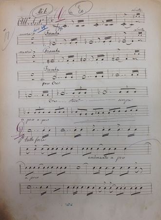 . . . were clearly prepared before 1875, as they include the original “Liber scriptus” (1874). Most also have as a later insert (of uncertain date) the definitive “Liber scriptus” (1875): these inserted pages are written on paper produced by the New York firm of Carl Fischer. As noted in the introduction to the score, on 9 November 1874, Ricordi informed Verdi that performing materials had been sold to one of the Strakosch brothers. . . . How they found their way into the Chicago Symphony Orchestra collection has not been determined, although it is possible that they belonged to the musical library of Theodore Thomas. . . . From players’ annotations, however, it is apparent that these parts were used for performances even after Ricordi issued printed parts in 1913.