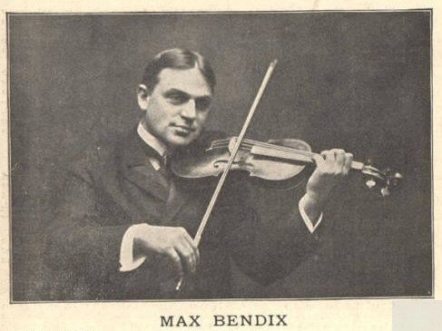 Max Bendix (1866–1945) enjoyed a remarkable career as a violinist and conductor. He was born on March 28, 1866, in Detroit, Michigan, and his first teacher was his father William, an orchestra leader at the Academy of Music in New York. He first performed as a soloist when he was eight years old and later studied with Richard Arnold, concertmaster of the New York Philharmonic. Bendix attended the Cincinnati Conservatory of Music as a student of Simon E. Jacobsohn, who likely introduced him to Theodore Thomas. He first performed with Thomas and the Theodore Thomas Orchestra at the Cincinnati May Festival in 1878, became a first violinist in that ensemble the following year and graduated with a gold medal from the conservatory at the age of 14 in 1880.