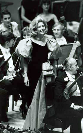Lady Solti also was a frequent presence onstage, performing as narrator for children’s concerts, as well as hosting the centennial gala concert on October 6, 1990, along with the Orchestra Hall centennial concert on December 14, 2004.