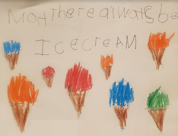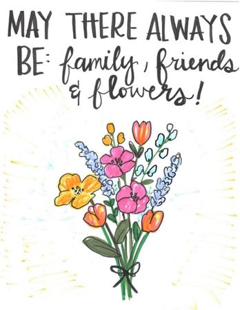 Artists were encouraged to put their own spin on “May there always be …” submissions, whether in the form of drawings, embroidery, handwritten wishes or verbal responses. Residents of the Breakers at Edgewater Beach chose to paint watercolors, incorporating this artwork into a previously planned project of finding “silver linings” during a difficult season.