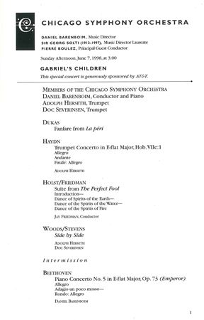 "Gabriel's Children," the concert celebrating Adolph Herseth's fiftieth season as the CSO's principal trumpet, on June 7, 1998