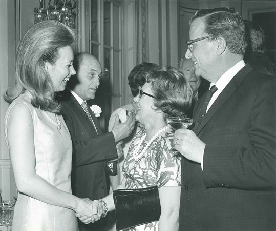 Valerie and Georg Solti greet Avis and Adolph Herseth in Orchestra Hall's ballroom on March 18, 1969