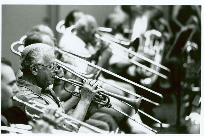 Adolph Herseth in the midst of the CSO's brass section in 1988