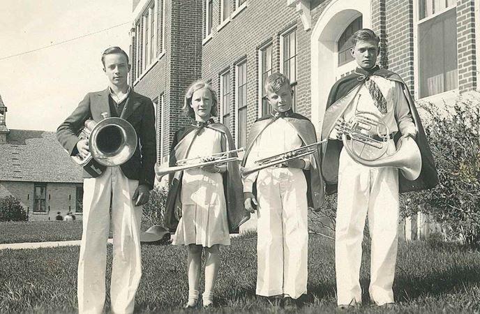 Adolph Herseth (far right) with fellow Luther College band members in 1940