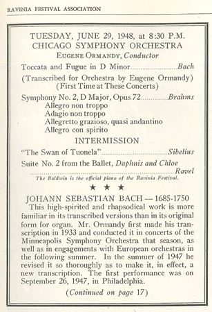 Adolph Herseth's first concert with the CSO was at the Ravinia Festival on June 29, 1948, under the baton of Eugene Ormandy.