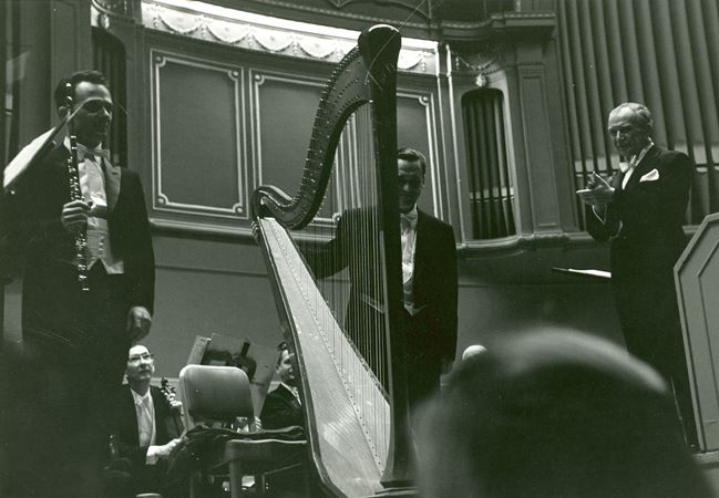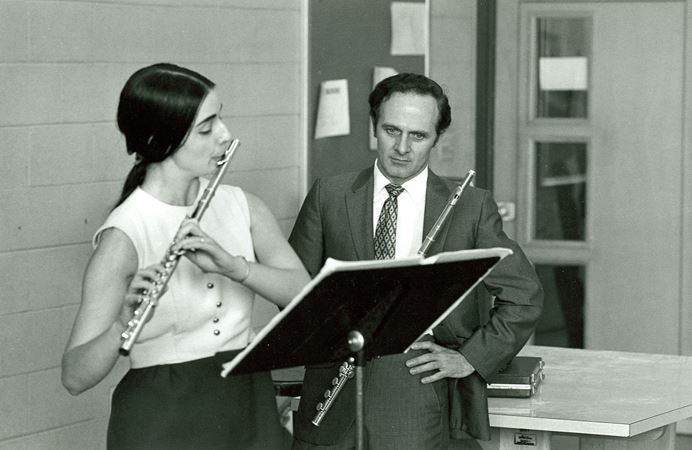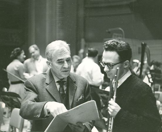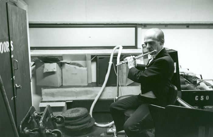Peck first appeared as soloist with the Orchestra at the Ravinia Festival in August 1959, in Bach’s Fifth Brandenburg Concerto, and on subscription concerts in Orchestra Hall in November 1960, in Bach’s Second Orchestral Suite, both with Walter Hendl conducting. During his tenure, he appeared as soloist on more than 120 concerts directed by twenty-five conductors — including music directors Reiner, Jean Martinon, Sir Georg Solti, and Daniel Barenboim — in Orchestra Hall, at the Ravinia Festival, and on tour.
