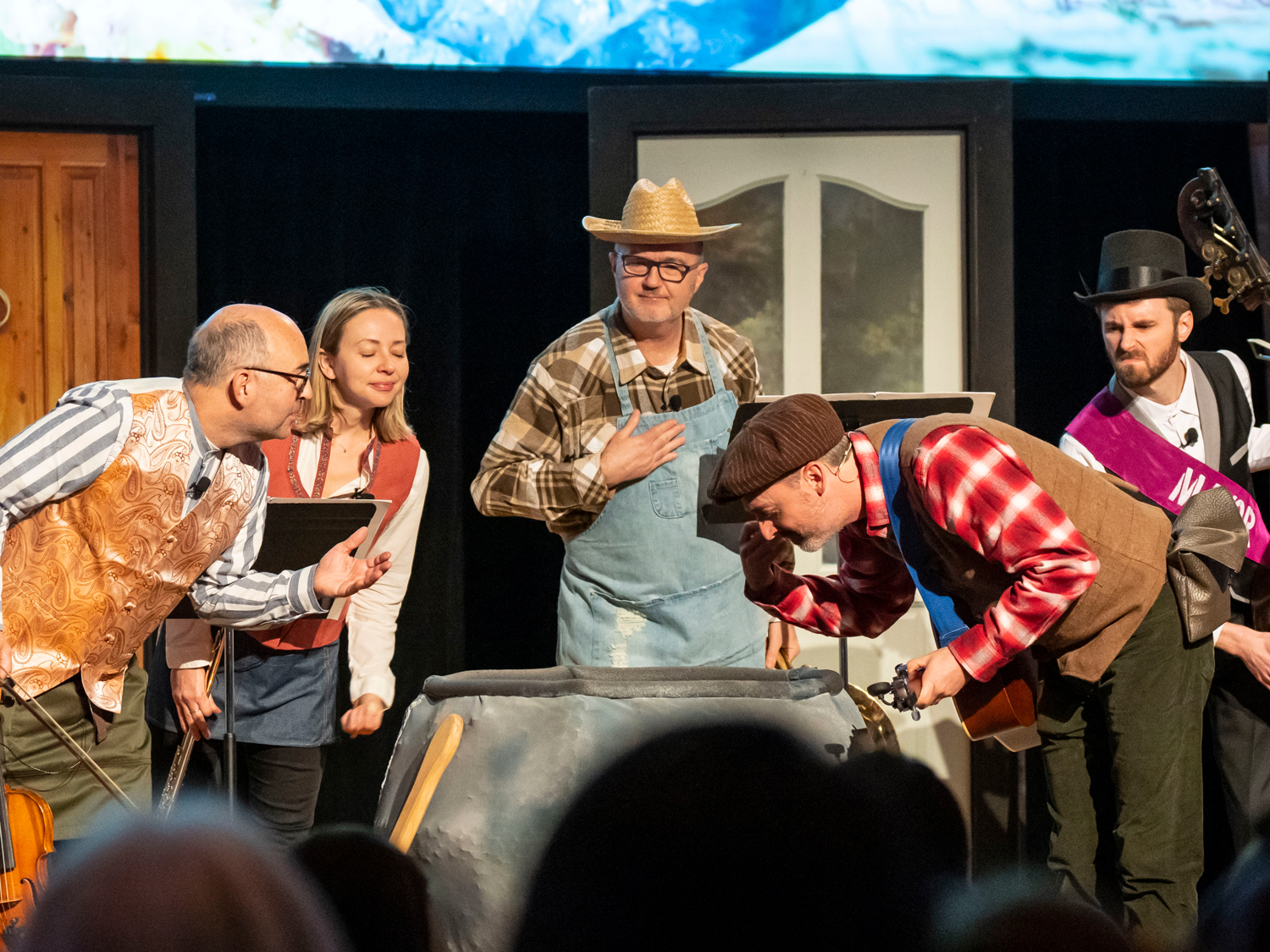 A hungry traveler arrives at a village where the townspeople claim they have no food to share. But the traveler pulls out a large pot, fills it with water, adds stones and says, “We have everything we need to make stone soup.” Before long, the villagers contribute to the broth and enjoy the most delicious soup they have ever tasted. In this musical adaptation of the classic tale, learn how the act of sharing fosters joy and celebration.
