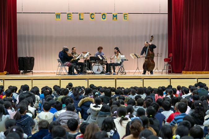 An ensemble of CSO musicians performs for a school during the orchestra's Asia Tour in 2019.
