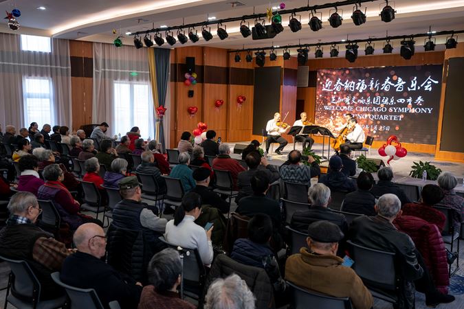 A CSO string quartet performs for a retirement community during the orchestra's Asia Tour in 2019.